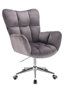 FOTEL HR8516K STALOWY WELUR ZŁOTA PODSTAWA