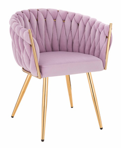 HR750 KRZESŁO ZŁOTE NOGI PUDROWY RÓŻ WELUR