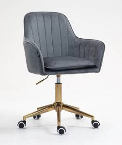 FOTEL HR2022K STALOWY WELUR ZŁOTA PODSTAWA