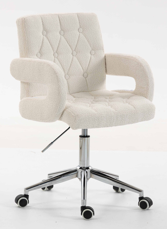 Ten fotel łączy klasyczną formę z subtelnym, współczesnym akcentem. Jego szerokie, wygodne siedzisko i wysokie oparcie zaprojektowano tak, aby zapewniały komfort nawet podczas dłuższych godzin pracy lub odpoczynku. Obity miękką, przytulną tkaniną bouclé, wprowadza do wnętrza ciepło, teksturę i domowy klimat, zachowując przy tym wyrafinowany wygląd. Charakterystyczne pikowanie z guzikami na oparciu dodaje mu elegancji i szlachetnego wykończenia — to właśnie ten detal stanowi delikatny twist, który przyciąga wzrok i sprawia, że fotel prezentuje się wyjątkowo.