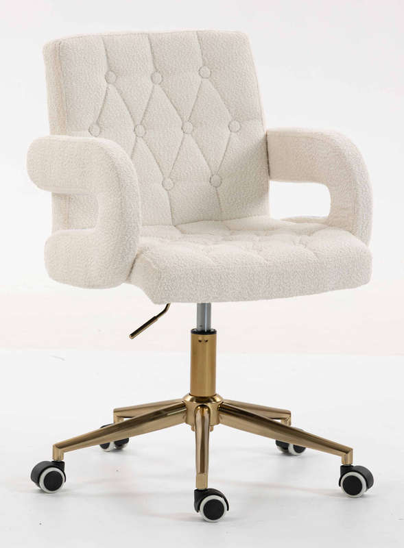 FOTEL HR8404K KREMOWY BARANEK ZŁOTA PODSTAWA
