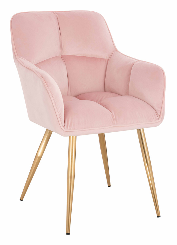 - Fotel na eleganckich złotych nogach, obszyty miękkim welurem. Ten wysublimowany mebel stanowić będzie doskonałe podkreślenie estetyki biura, gabinetu czy też jadalni. Wysokie oparcie oraz wygodne podłokietniki zapewniają niezwykle komfortowy odpoczynek.