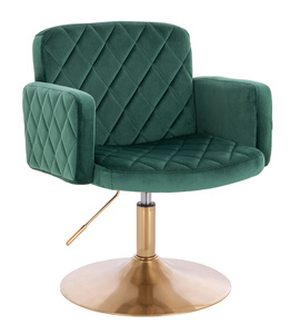 FOTEL HR802K BUTELKOWA ZIELEŃ WELUR ZŁOTA PODSTAWA