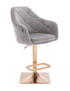 FOTEL HR830 STALOWY WELUR ZŁOTA PODSTAWA
