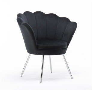 MUSZELKA FOTEL FREY CZARNY WELUR CHROMOWANE NOGI