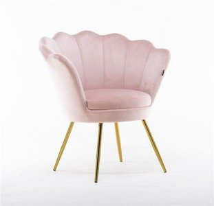 MUSZELKA FOTEL FREY PUDROWY RÓŻ ZŁOTE NOGI