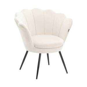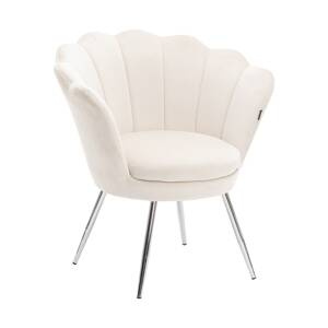 MUSZELKA FOTEL FREY KREMOWY WELUR CHROMOWANE NOGI